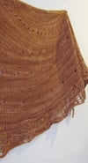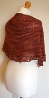 La Lune Rousse is an asymmetric semi-circular shawl with short row shaping, beads, eyelets and lace, worked from the top-down. The beads are optional, and instructions are included for both beaded and un-beaded versions.