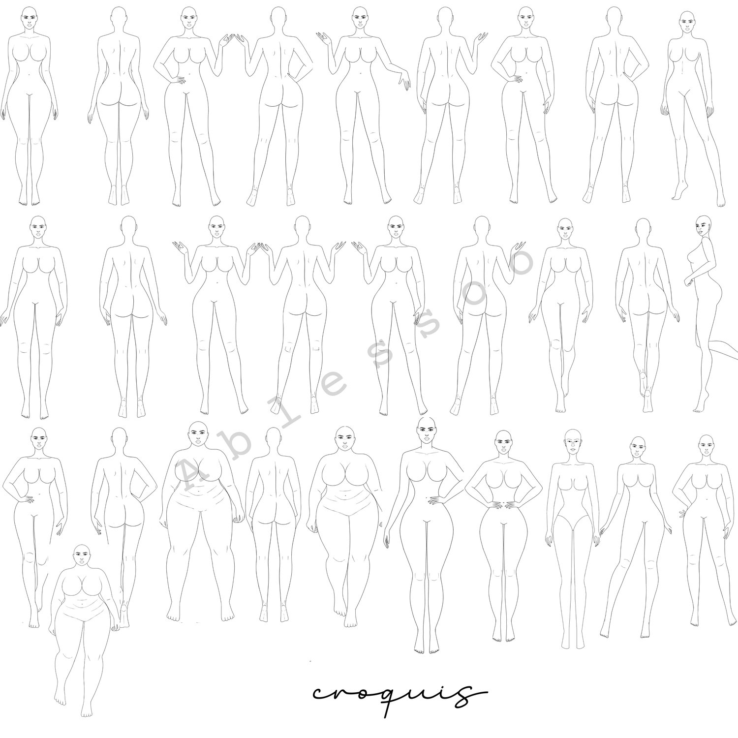32 Croquis Pack – 21 Poses (Front, Back, 3/4 & Side Views)