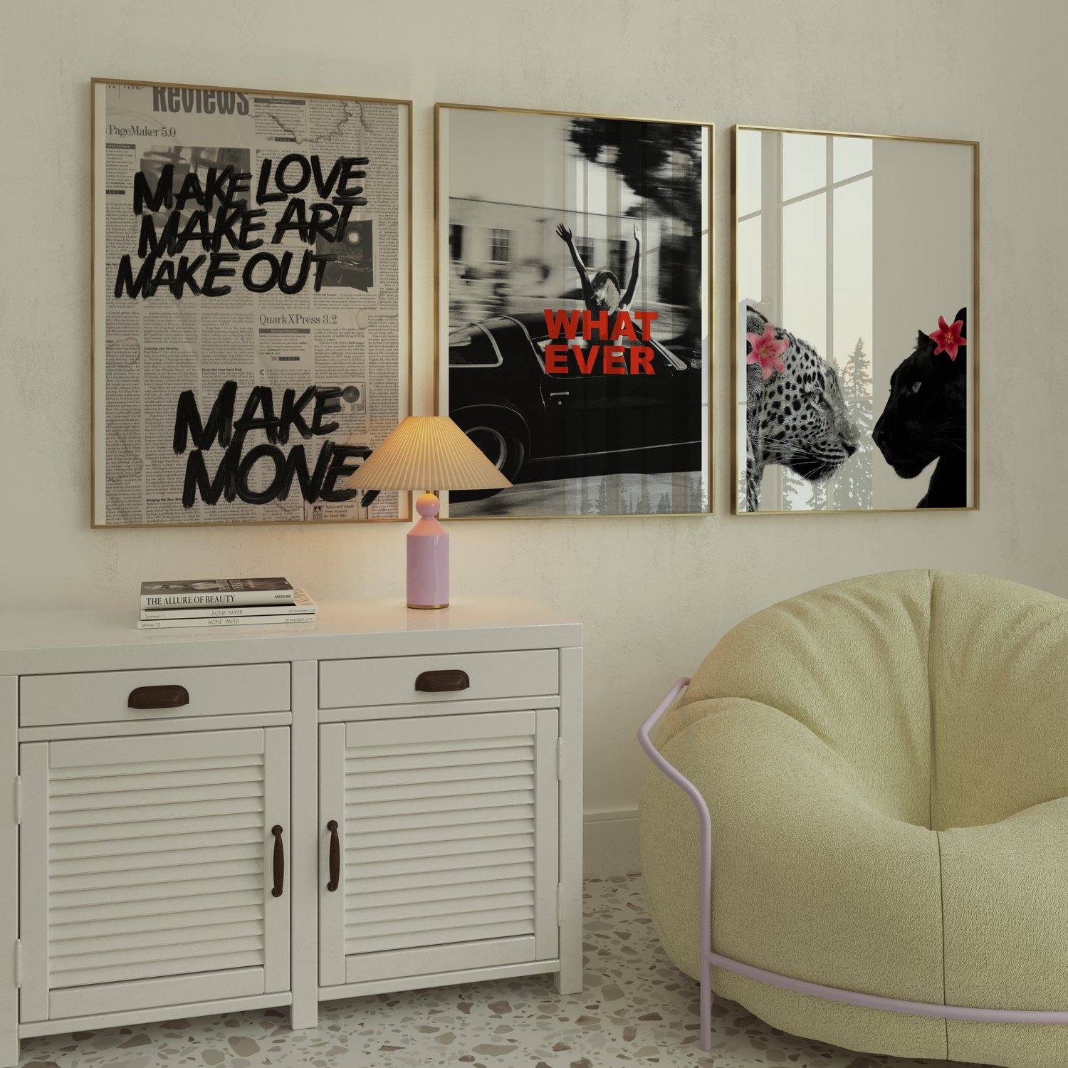 Each print layers contrast, attitude, and texture — ideal for bedrooms, living rooms, studio corners, beauty rooms, and maximalist or minimalist interiors alike.