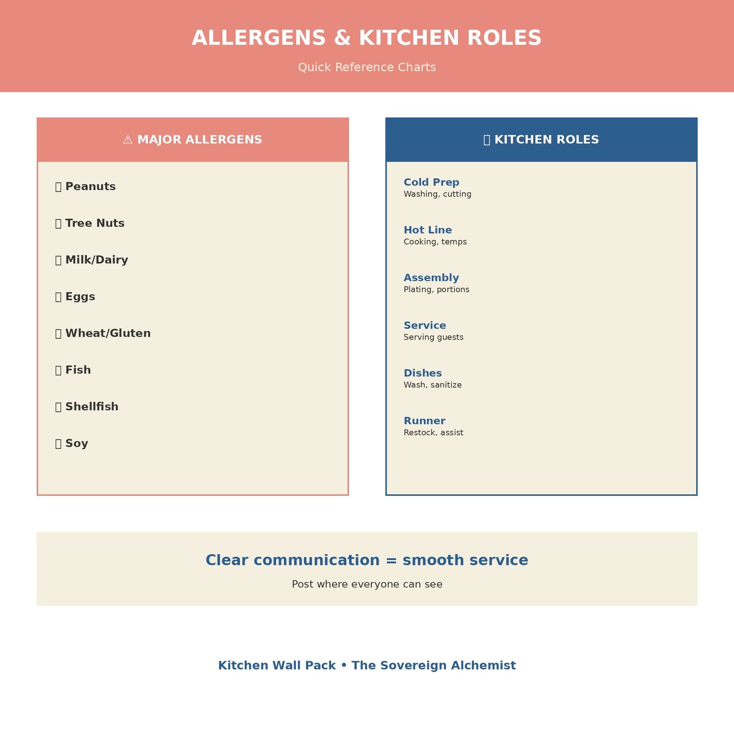 โ ๏ธ Major Allergen Reference All 8 priority allergens at a glance: peanuts, tree nuts, milk, eggs, wheat, fish, shellfish, soy. Quick identification for your team.
