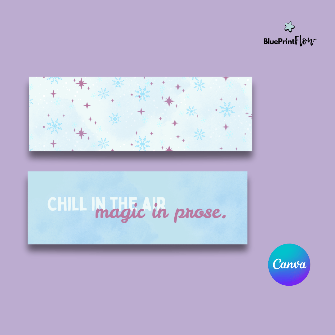 This winter bookmark template set captures the essence of the season with delicate snowflakes, iced blue tones, and charming details that bookworms will adore.