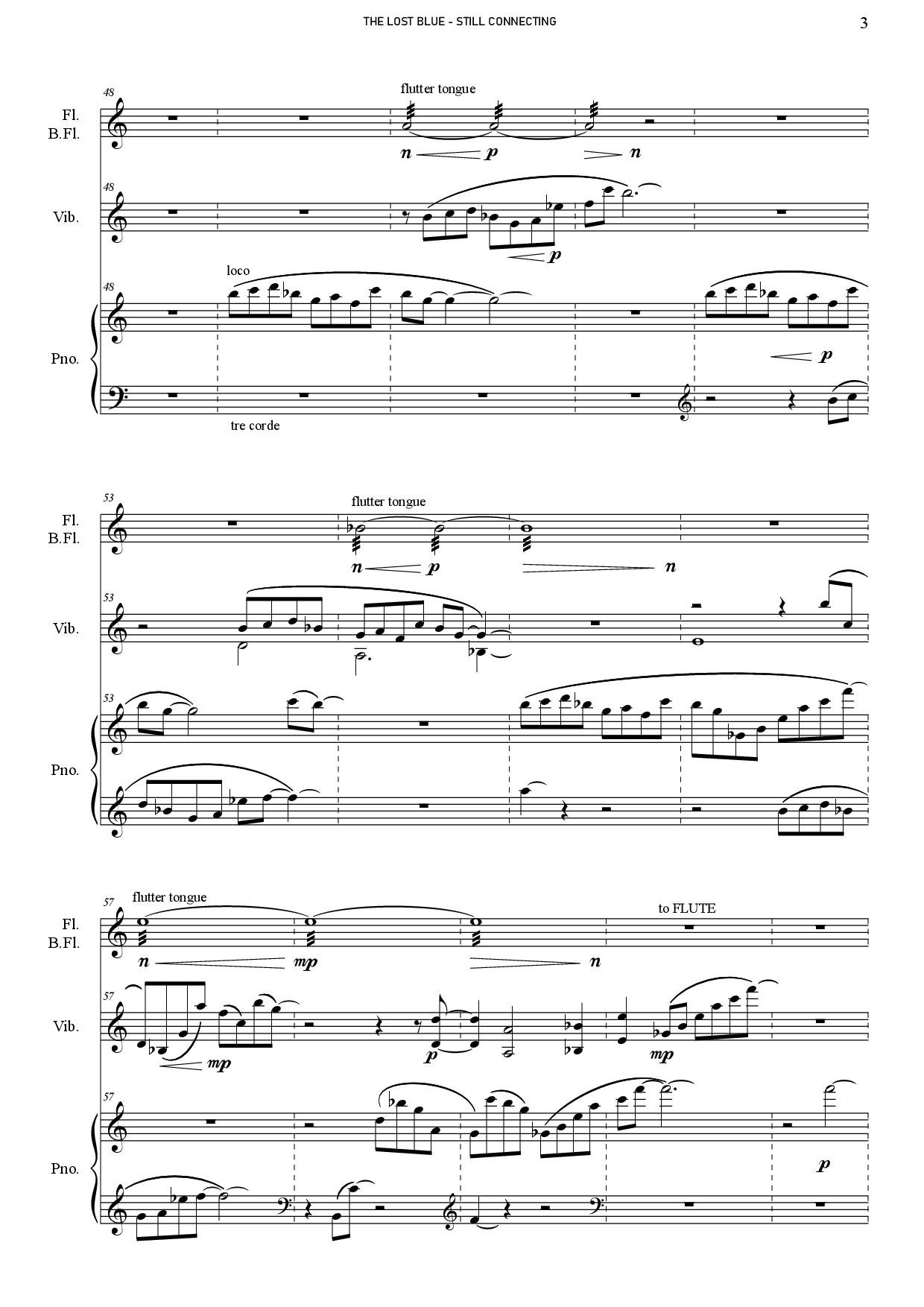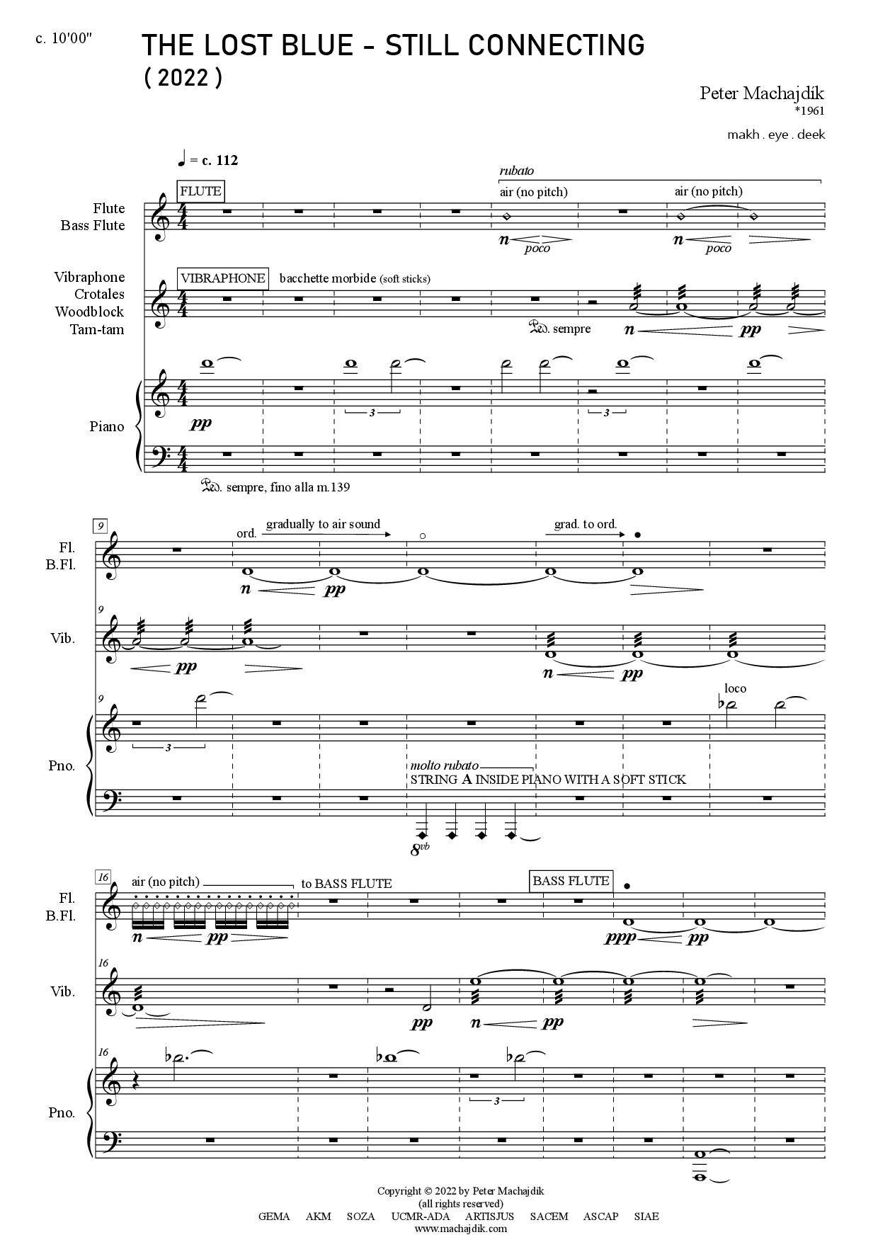 Peter Machajdík: THE LOST BLUE - STILL CONNECTING for flute / bass flute, percussion and piano (Digital Sheet Music) [score and parts]