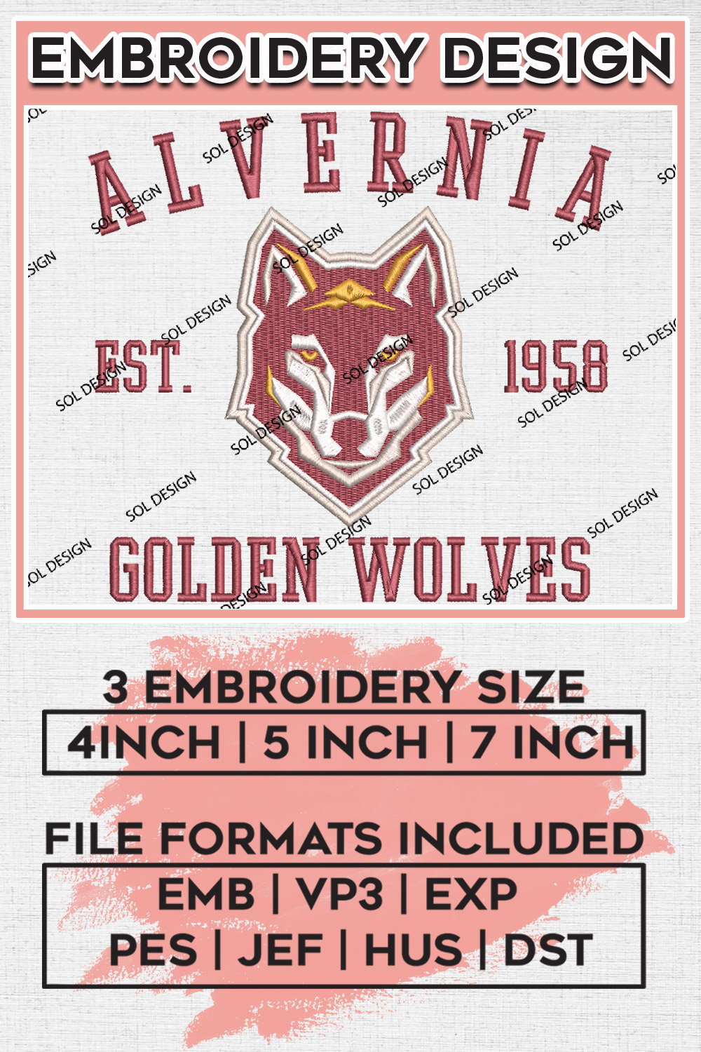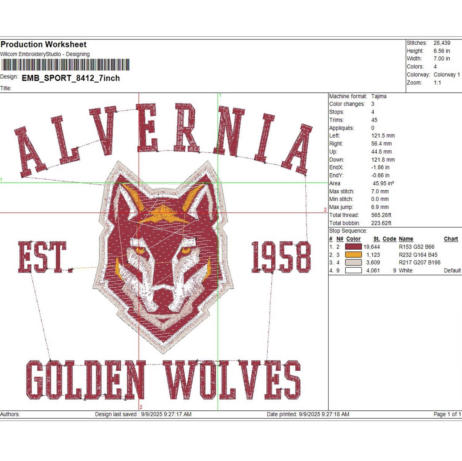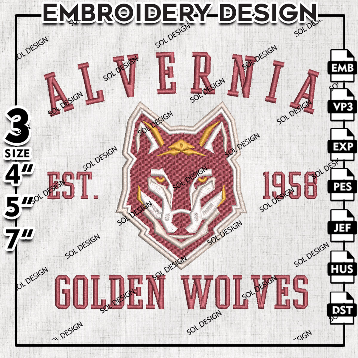 Alvernia Golden Wolves College Football Team Est 1985 Logo Embroidery Designs, Ncaa Embroidery Files, NCAA Alvernia Golden Wolves Team Logo Embroidery, Game Day Machine Embroidery Design, Digital Download