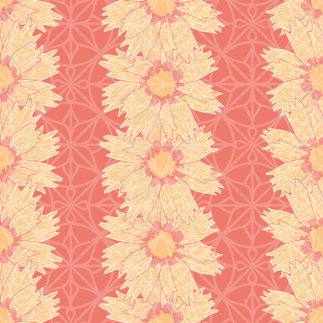 Doodle Calliopsis vector repeating pattern. Cartoon flower illustration background.