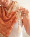 Worked in a V-shape that drapes effortlessly, the design features Estonian braids, simple lace, and seed stitch. The edges are polished with built-in i-cord that is continued in the i-cord bind off as well. Instructions are both charted and written out.