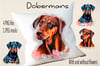 Dobermans- 2 dogs, each with and without flowers. 4 PNG files and 2 JPEG mocks