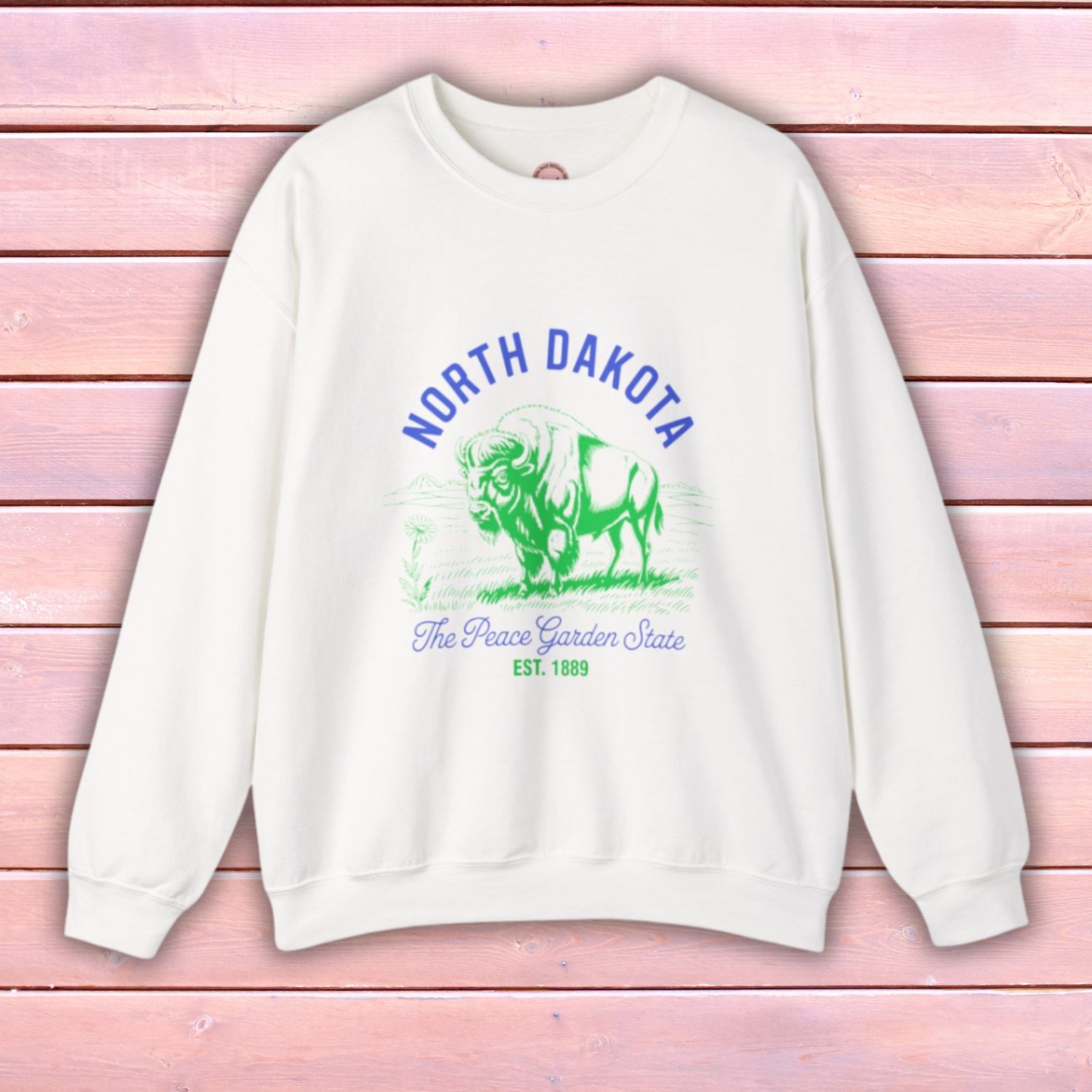 North Dakota State Pride Unisex Crewneck Sweatshirt – Cozy Vintage-Style Gift for Dakotans, Casual Cold Weather Apparel