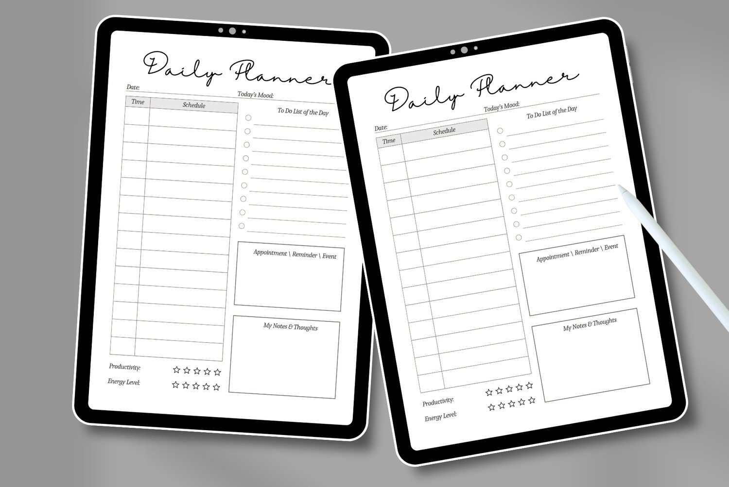 Stay on track, stay motivated, and create productive days effortlessly with this minimal daily planning page!
