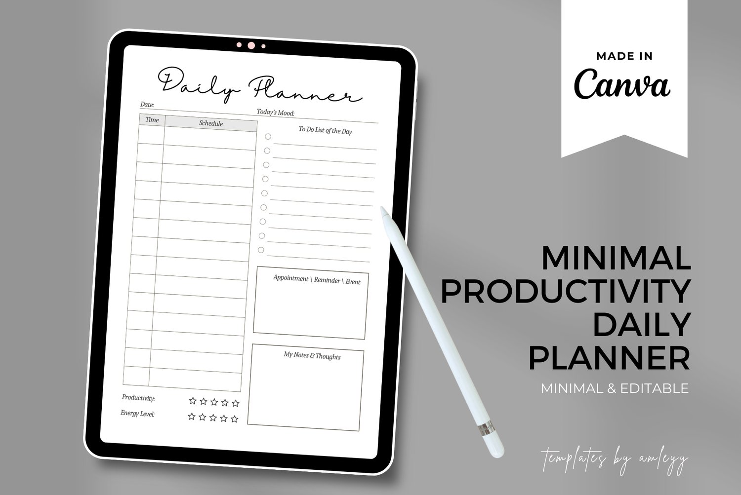 Minimal Productivity Daily Planner Template – Editable Canva Daily Schedule