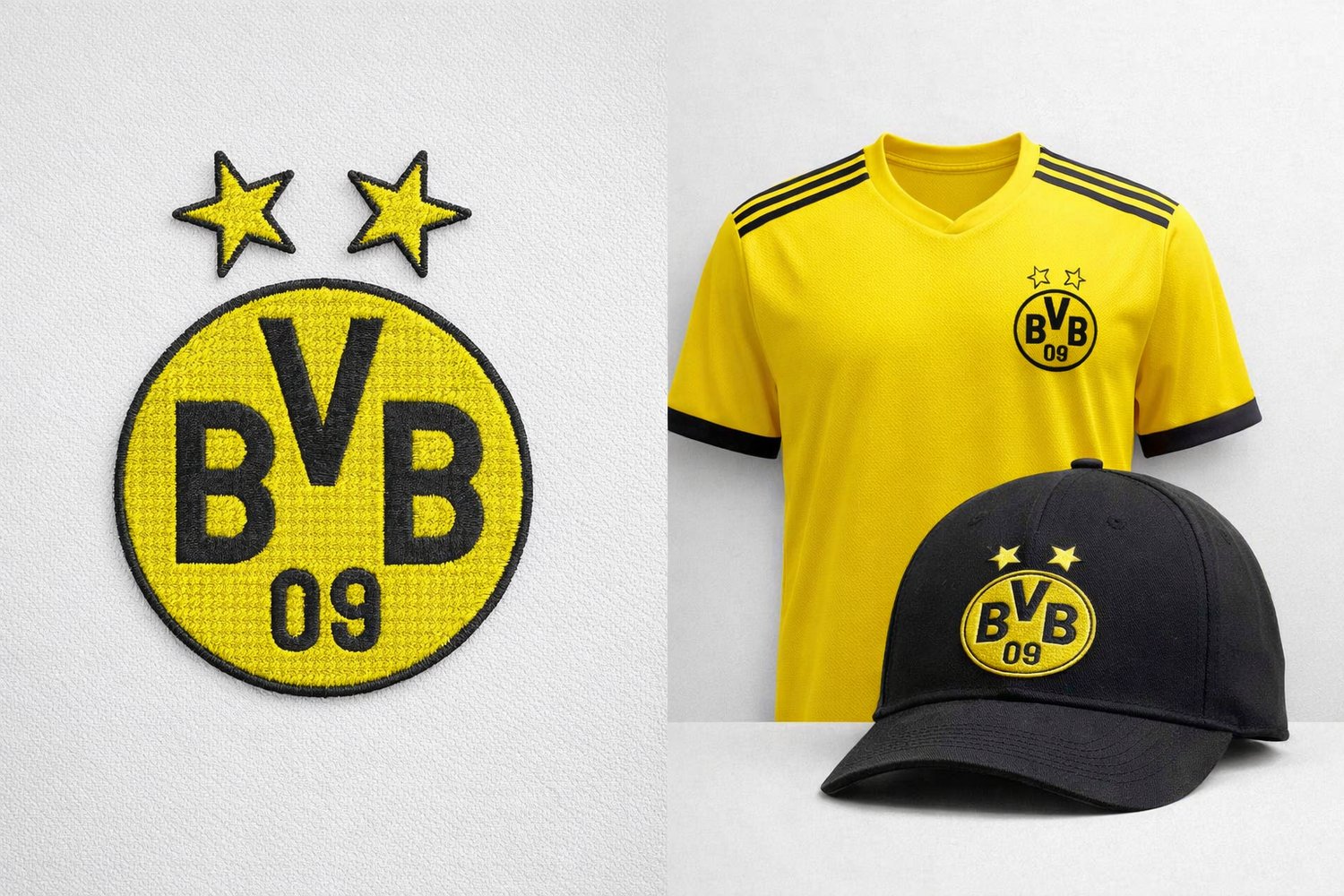 Perfect for embroidery businesses, soccer fans, custom apparel shops, and home embroidery machines looking for a high-quality Borussia Dortmund–style logo embroidery design.