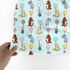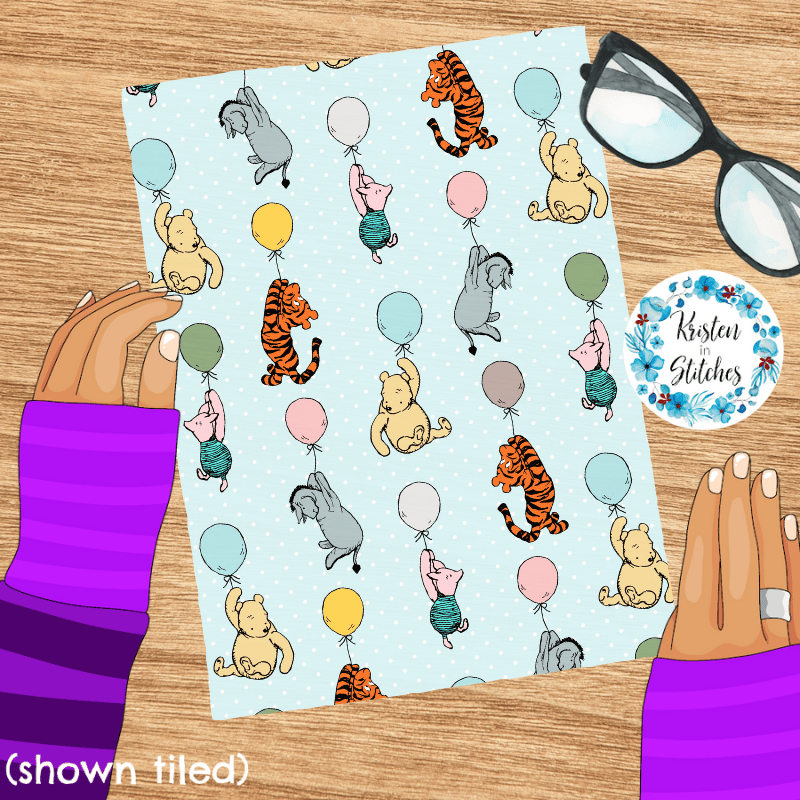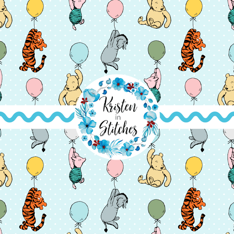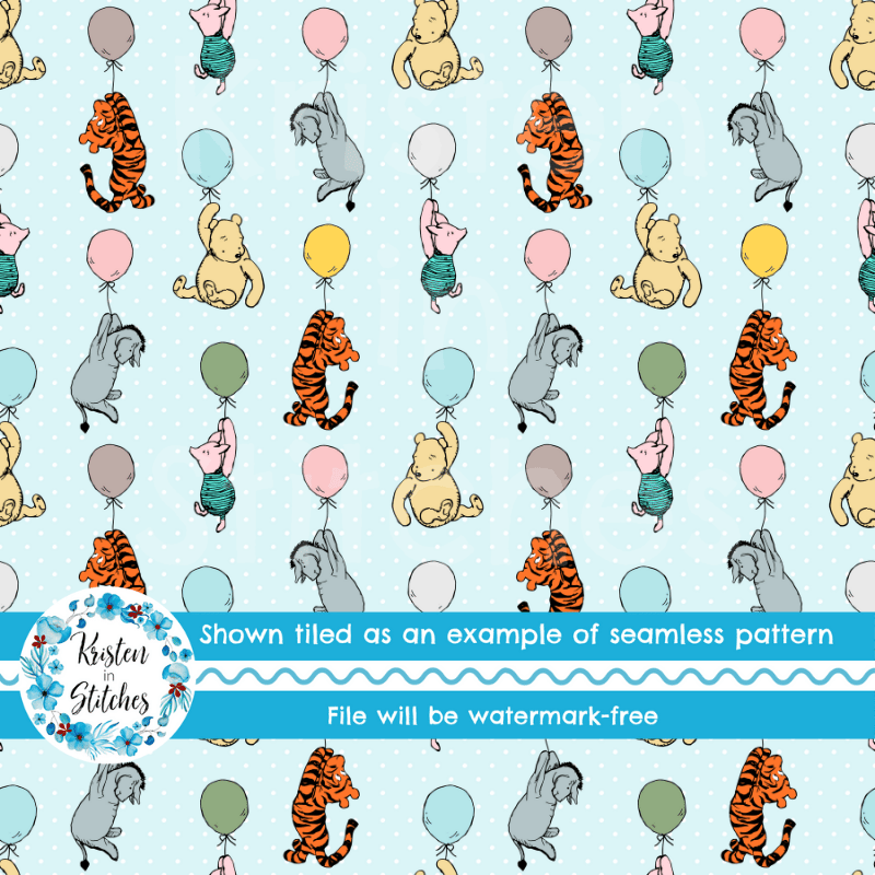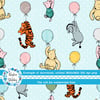 Classic Winnie the Pooh and Friends Floating Balloons Nursery Seamless Pattern, Baby Blue
