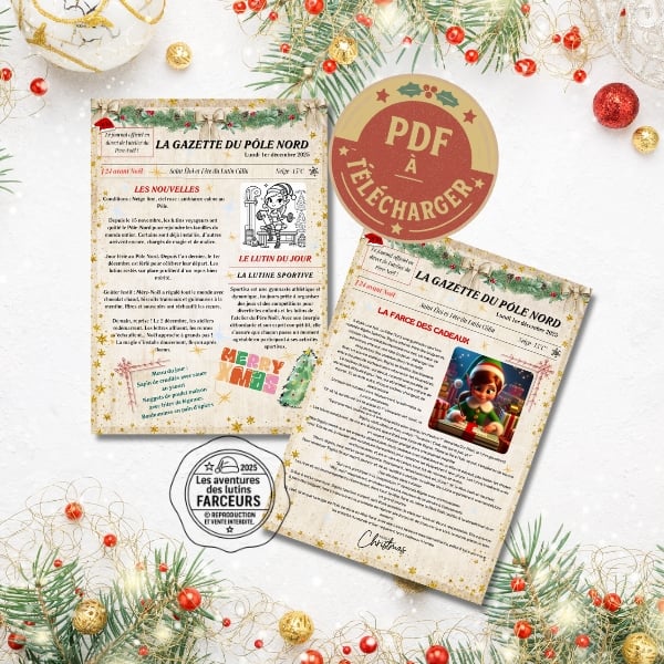 Plongez vos enfants dans la magie de Noël avec la Gazette du Père Noël, remplie d’histoires, de jeux et de surprises des lutins farceurs.