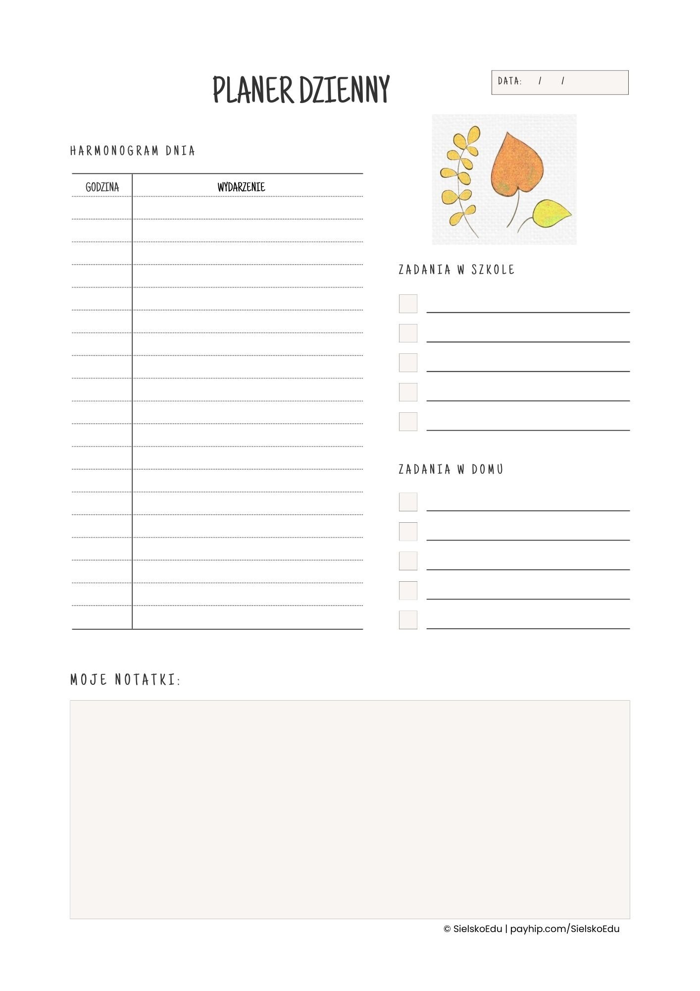 - planer dzienny – pozwoli rozpisać naukę krok po kroku, wyznaczyć priorytety i zaznaczyć drobne sukcesy dnia.