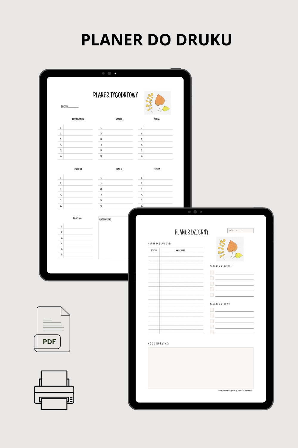 Planer sprawdzi się nie tylko u uczniów, którzy chcą lepiej zorganizować naukę, ale także u nauczycieli – jako miejsce na pomysły, lekcje i szkolne notatki. Możesz je wydrukować tyle razy, ile potrzebujesz i korzystać przez cały rok.