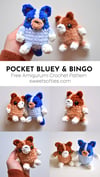Free version of pattern available at: https://www.sweetsofties.com/2024/10/pocket-bluey-and-bingo.html