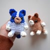 The Pocket Bluey and Bingo pattern makes a baby version of our favorite blue heeler (Australian Cattle Dog) and red heeler from the Bluey show! This mini size amigurumi is perfect for kids to have some pretend play fun with. They are designed with plush chenille velvet yarn, making them soft dolls that work up quickly. They can also be crocheted with thinner yarns to create a smaller keychain size. Bluey and Bingo both use the same pattern, but with different yarn colors. This makes the perfect birthday or holiday gift for both child and adult Bluey fans. They are cute stocking stuffers, craft fair products, or even party favors for a Bluey themed party.