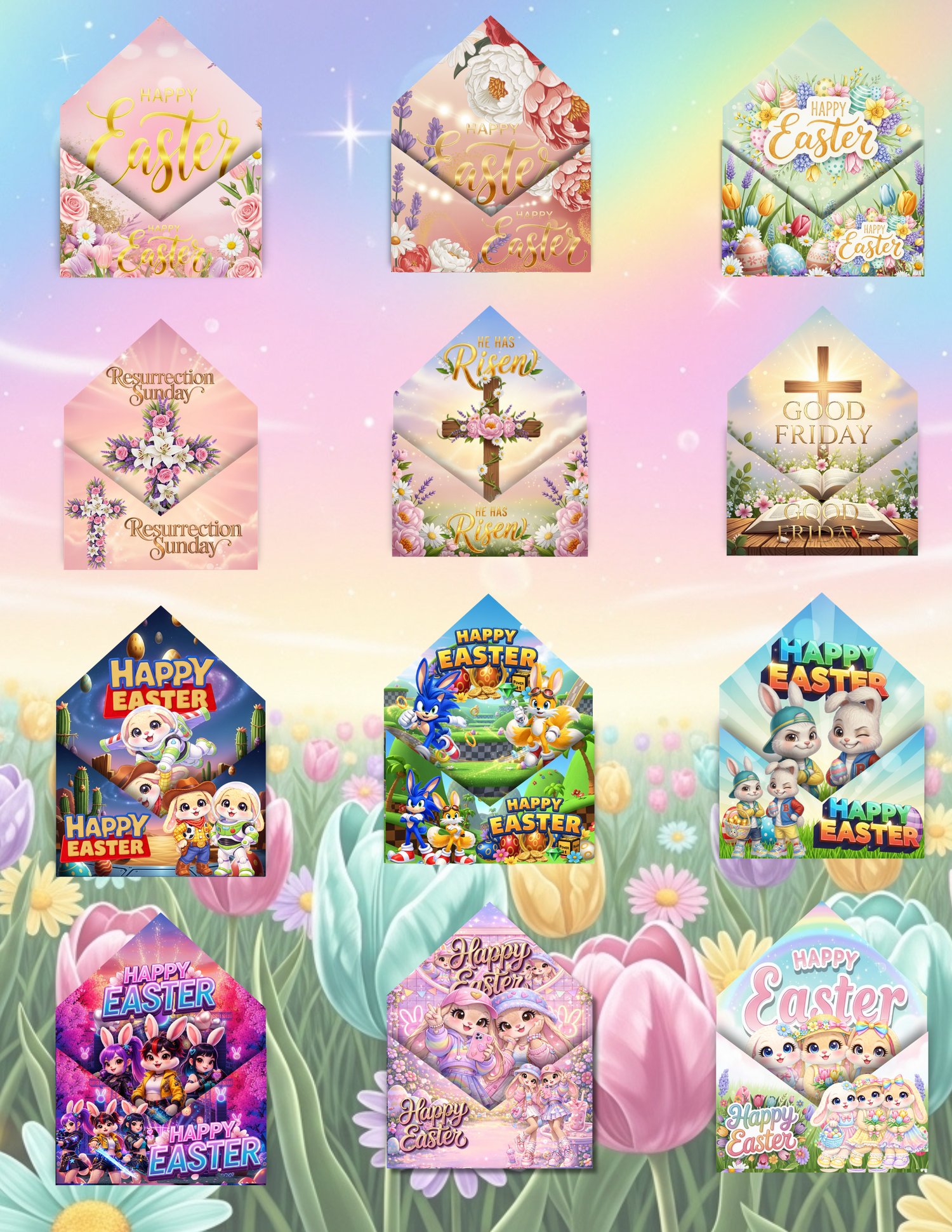 Create beautiful, elegant Easter gifts with this Easter Envelope Gift Box Template Bundle. Designed with a soft, floral aesthetic and a meaningful seasonal touch, these envelope style boxes are perfect for thoughtful gifting and custom creations.