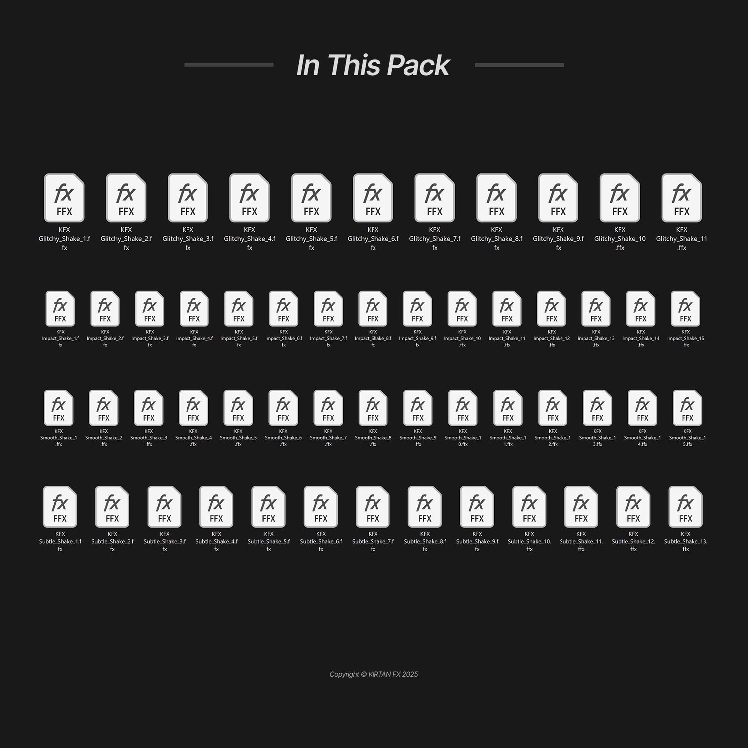 - 50+ Unique Shake Presets: Choose from a diverse selection of shake styles to match everything from high-octane action to dramatic tension and dynamic transitions.