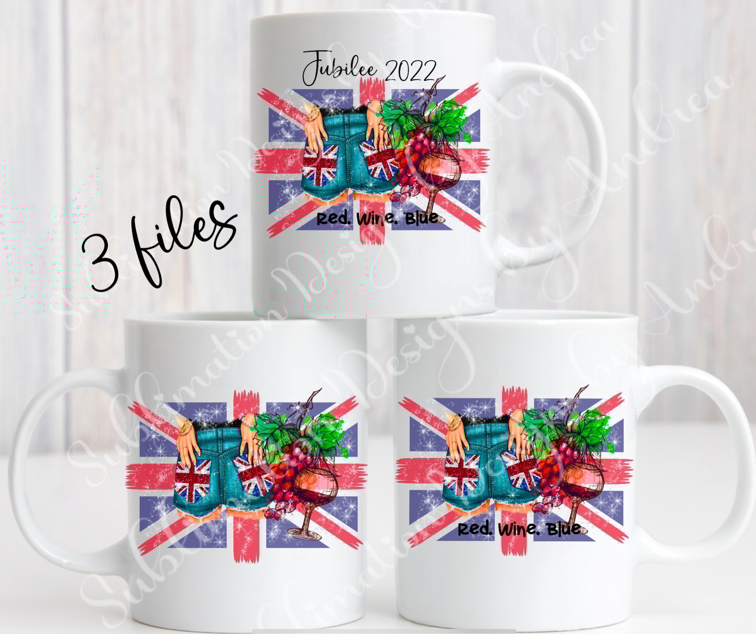 Jubilee, Union Jack - red, wine, blue design. 3 x PNGs