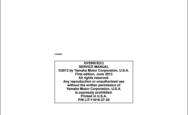 2014 Yamaha XVS95CE(C) Star Service Manual Part No. LIT-11616-27-30