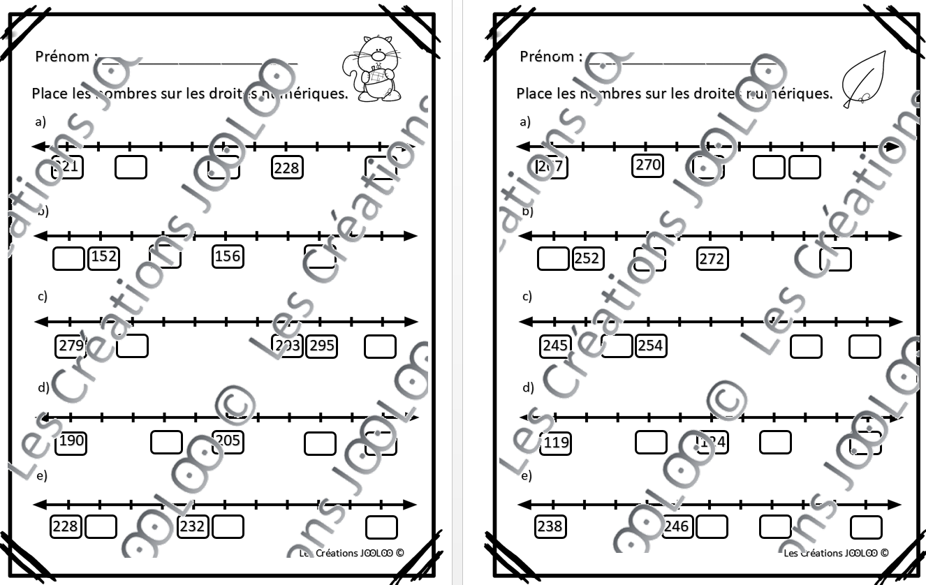 Voici 8 fiches pour pratiquer les nombres de 0 à 300 en les plaçant sur une droite numérique comportant des intervalles de 1, 2, 3, 4, 5 ou 10.