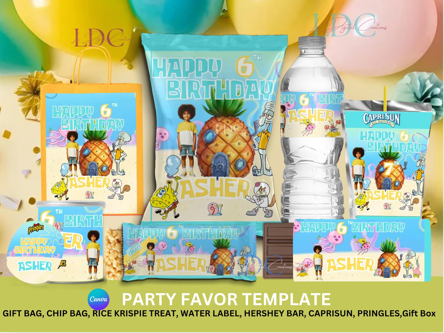 SpongeBob Party Favor Template Set | Editable Designs for Canva
