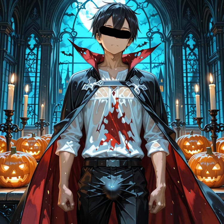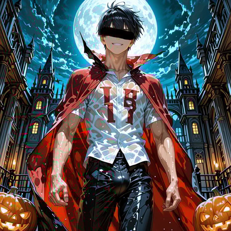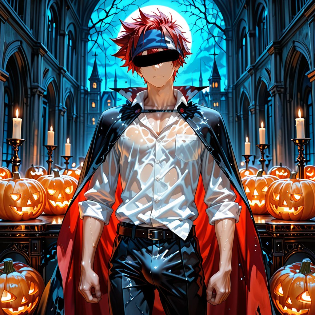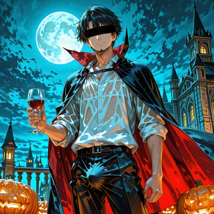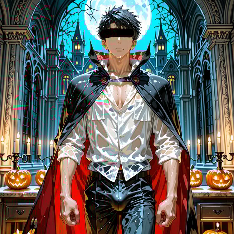 サウナで「ハロウィン」をテーマに、ヴァンパイアの男らしいキャラクターの魅力を思い切って表現しました。