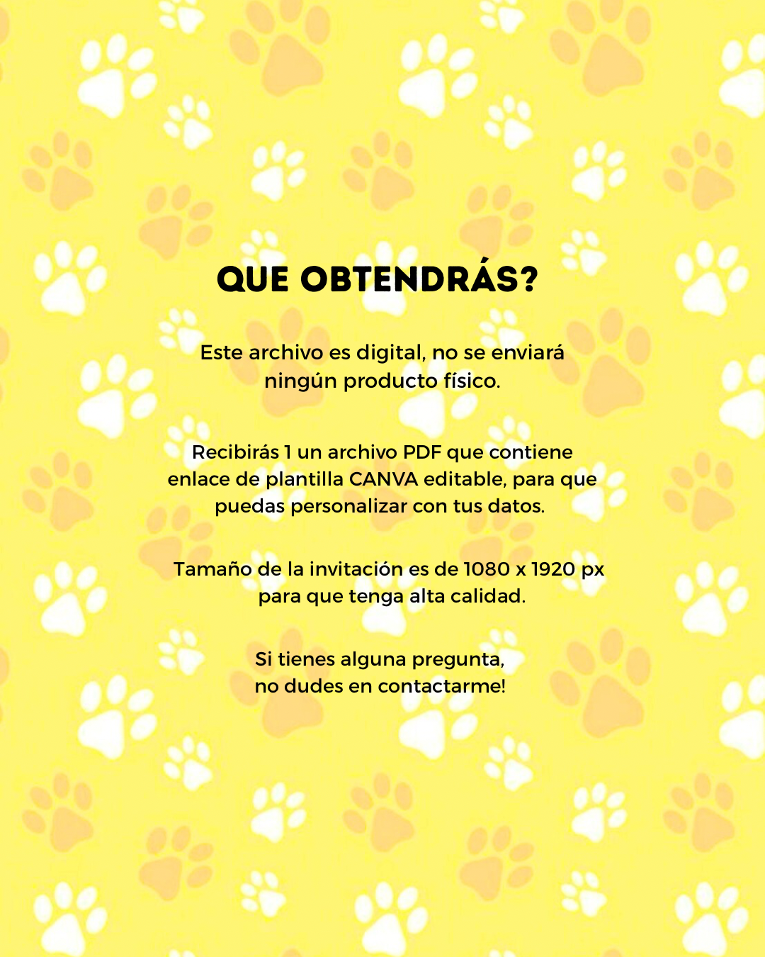 Celebra el cumpleaños de tu pequeño o pequeña con esta divertida invitación de Paw Patrol animada! Personalízala fácil y rápido desde tu celular o computador a través de Canva. No necesitas ser diseñador, yo ya hice el trabajo por ti! :D