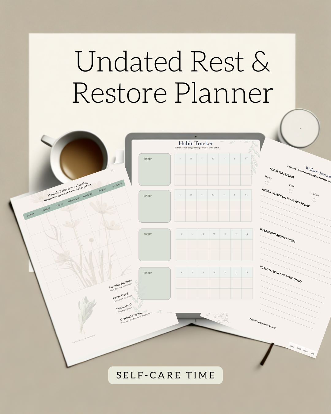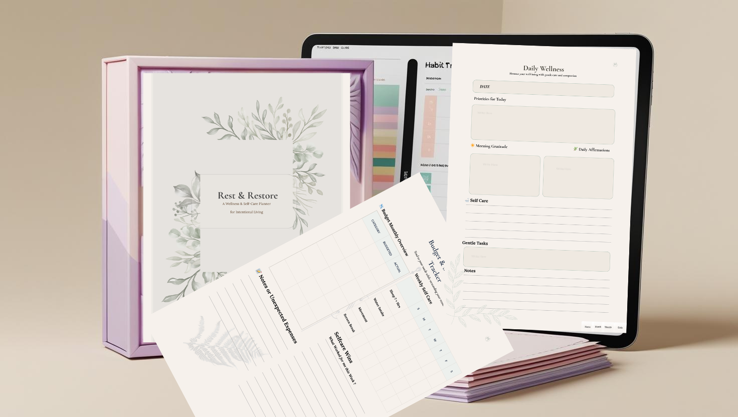 Rest & Restore Wellness & Self-Care Planner | Digital + Printable Life Planner, Journal, Habit & Budget Tracker