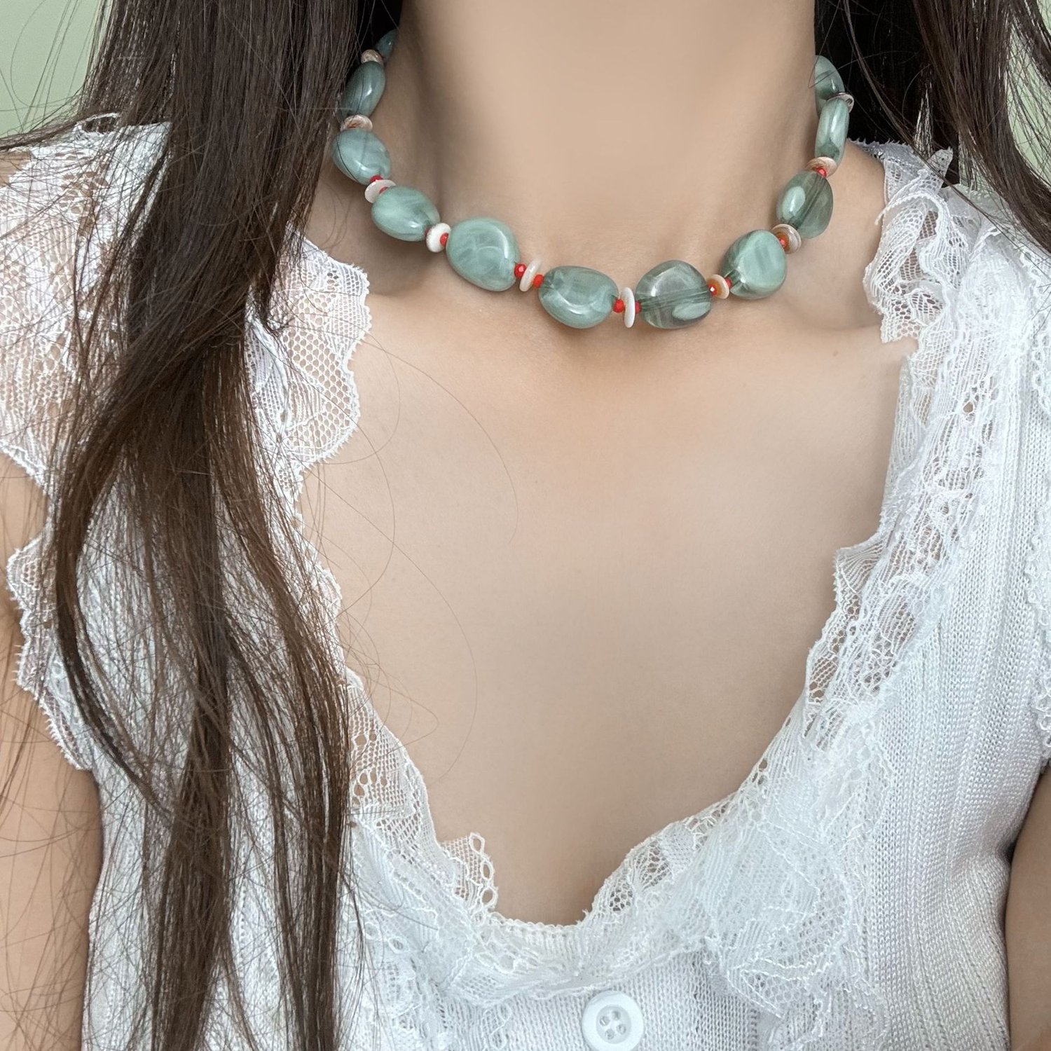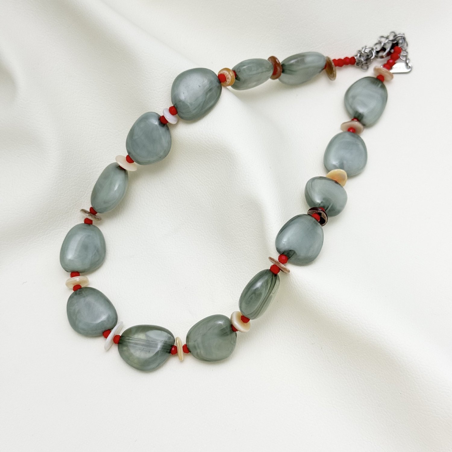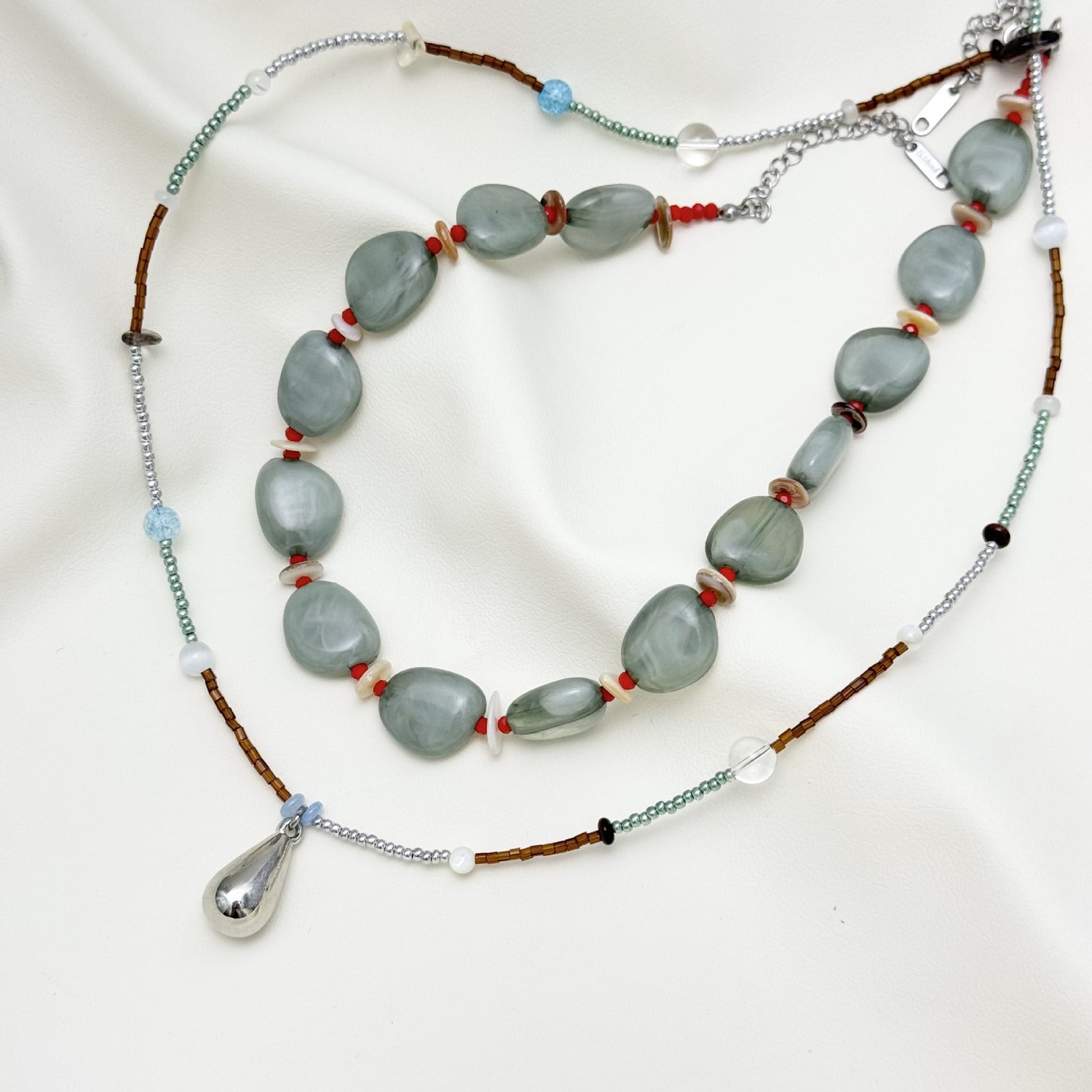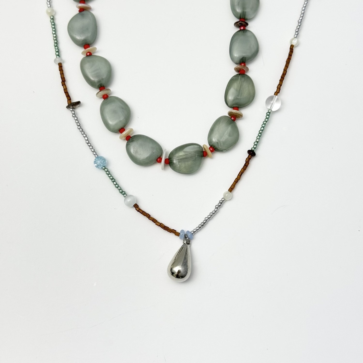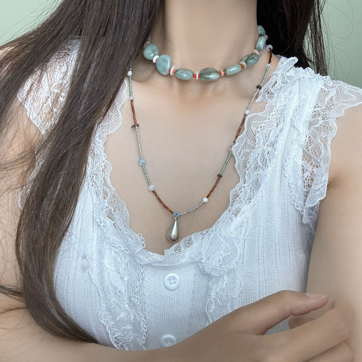 Vintage Chinese style handmade irregular beads silver water drop pendant layering necklace