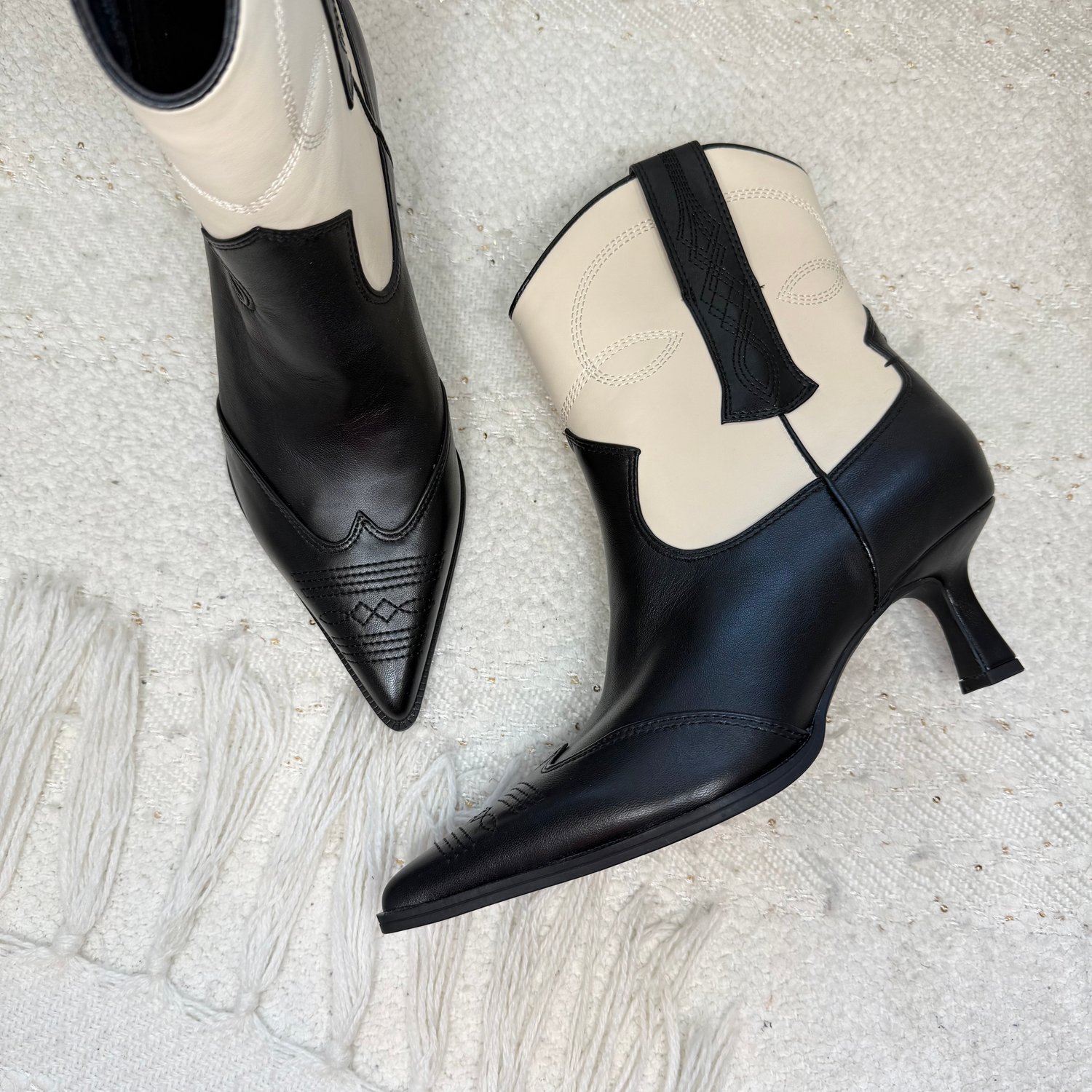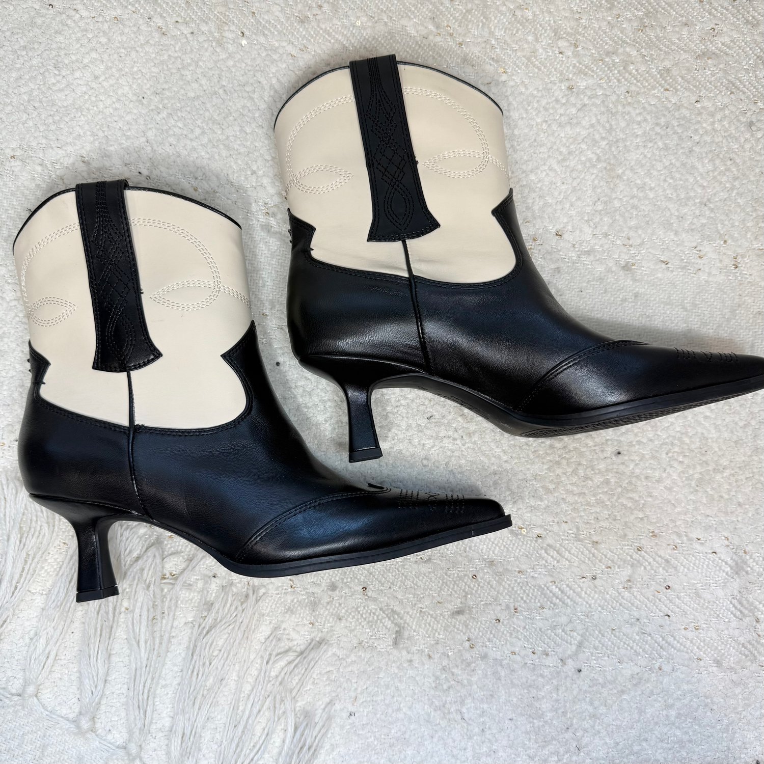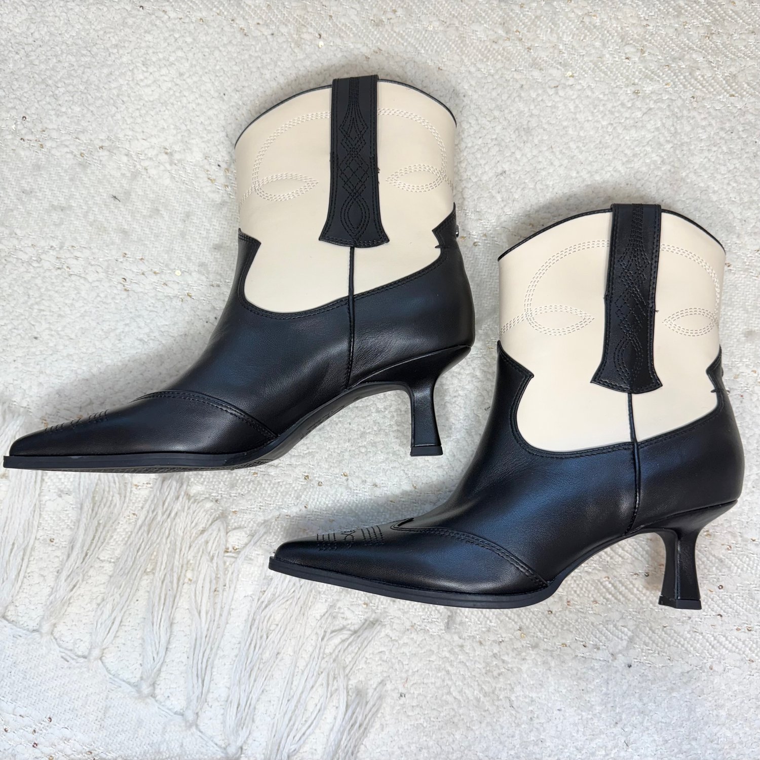 Circus by Sam Edelman beige/black leather low heel cowboy boots - size 8 1/2 NWOT