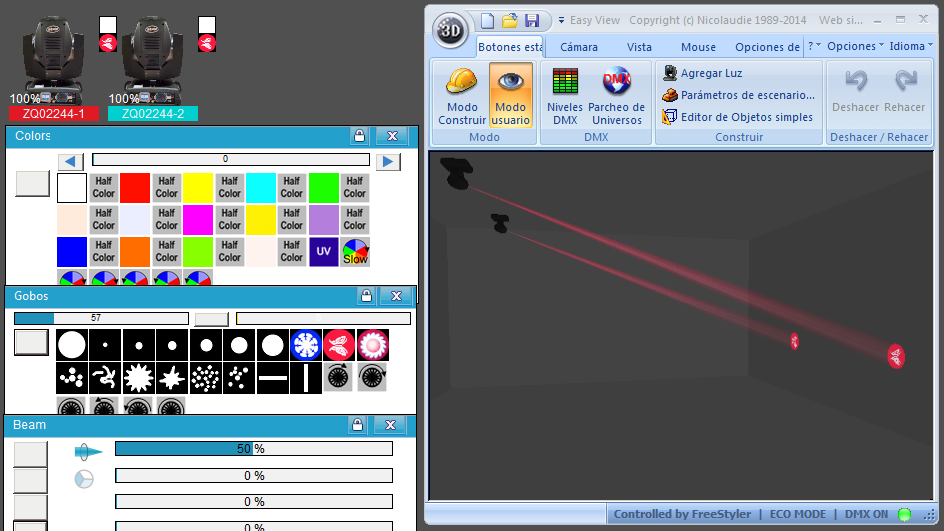 - Esta librería NO reemplaza al Fixture de Freestyler o QLC+, sólo es para ver la representación 3D. Es decir, HAY QUE TENER YA EL FIXTURE DE FREESTYLER o de QLC+ para controlar el equipo real.