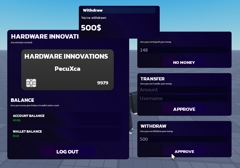 > - Wallet and Account systems, allows you to evade any tax from authorities