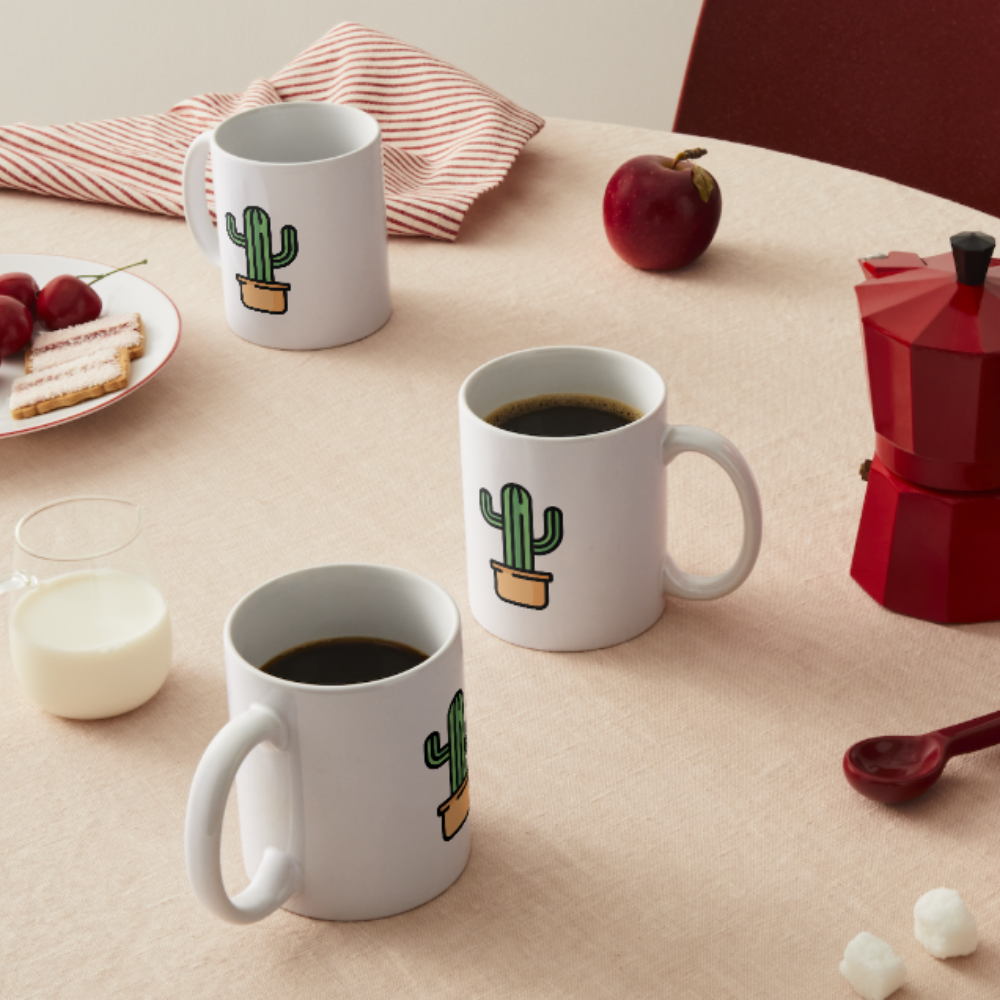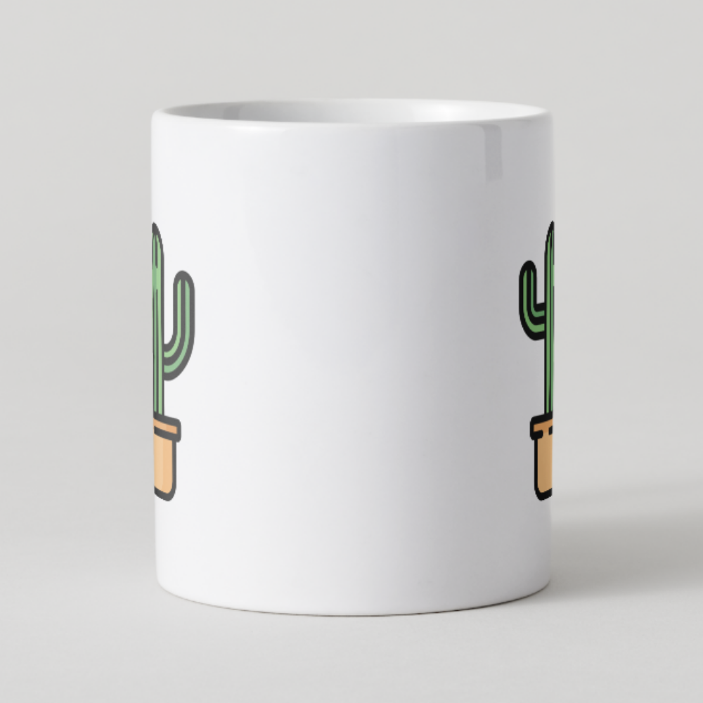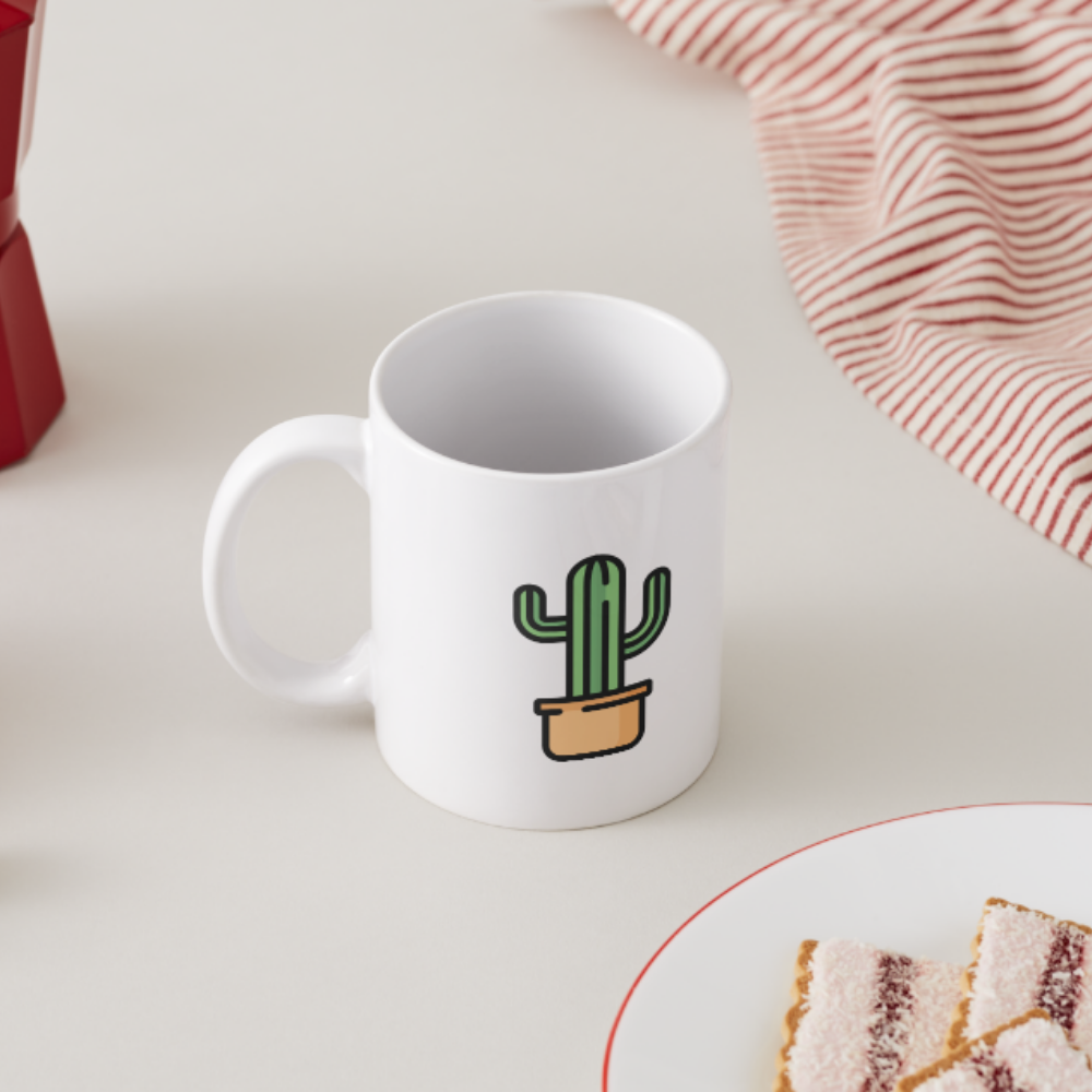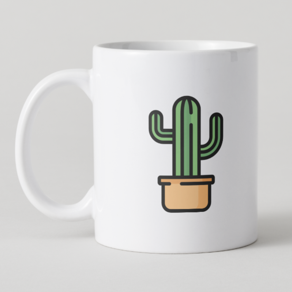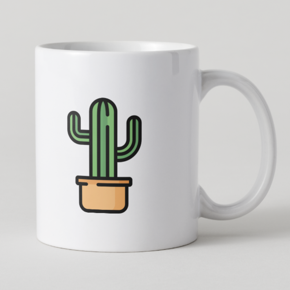Esta taza luce un simpático cactus en maceta con un diseño limpio y minimalista. Ideal para quienes aman las plantas, la calma visual y los objetos que decoran sin ocupar espacio.