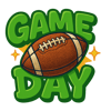 ⚡ Each design features a fun retro-style “Game Day” text with a detailed football, available in orange, red, blue, and green themes.