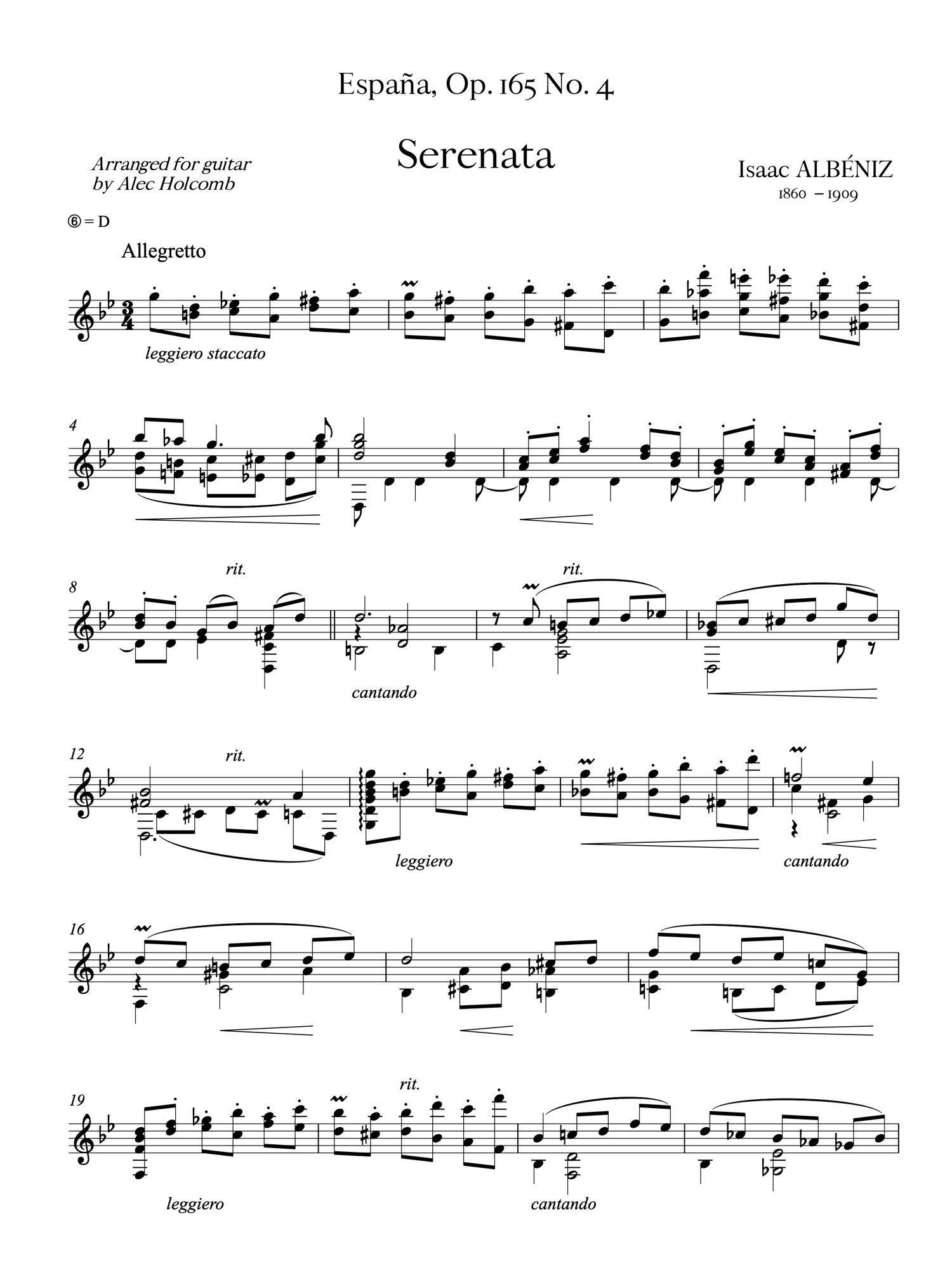 This project started over a decade ago, when I wanted to create my first album with Isaac Albéniz's music. I wanted to play this suite (Op.165) and Op.47 in their entirety. But finding ready-made transcriptions/arrangements was proving to be an impossible task for these reasons: