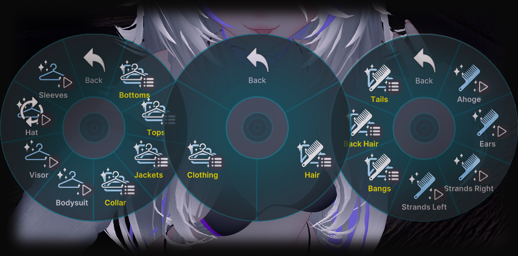 ☆ Radials for your skin color, glow strength for your clothing & hair, and for your avatars lighting.