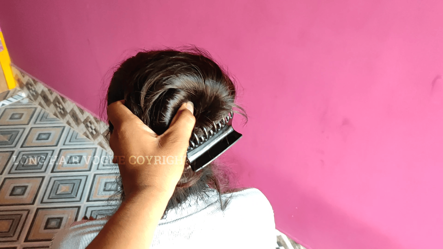 Experience the beauty of extreme thick long Indian hair as a man indulges in bun drops, elegant plaiting, bun playing, and gentle brushing with a stunning woman. A must-watch for long hair enthusiasts.