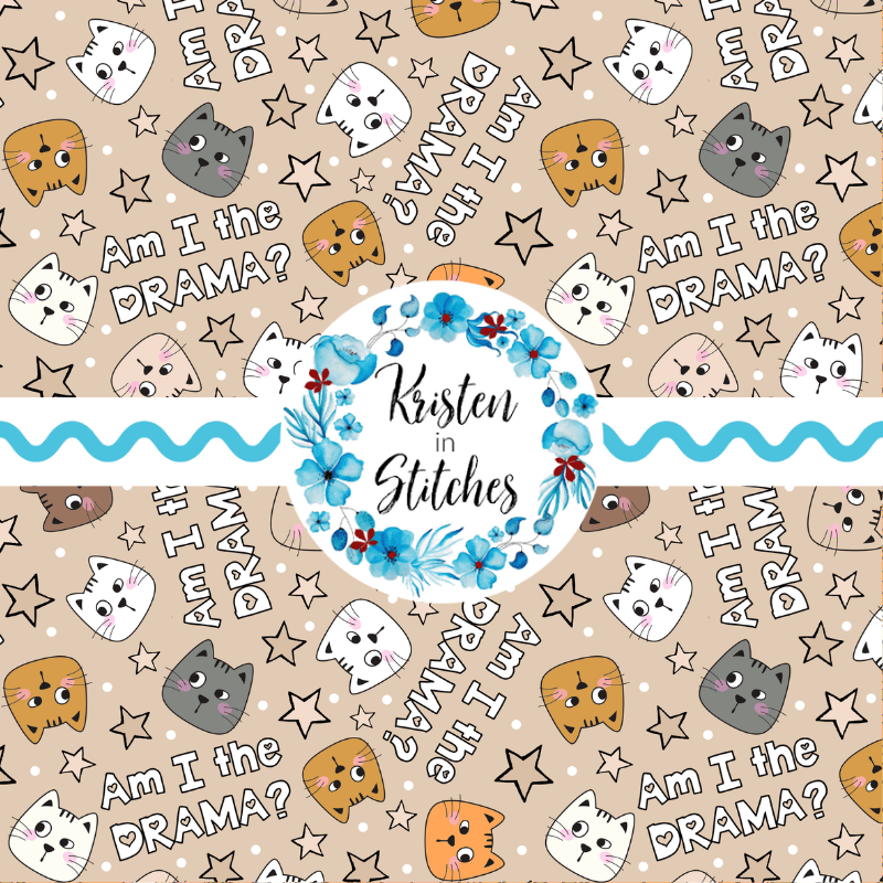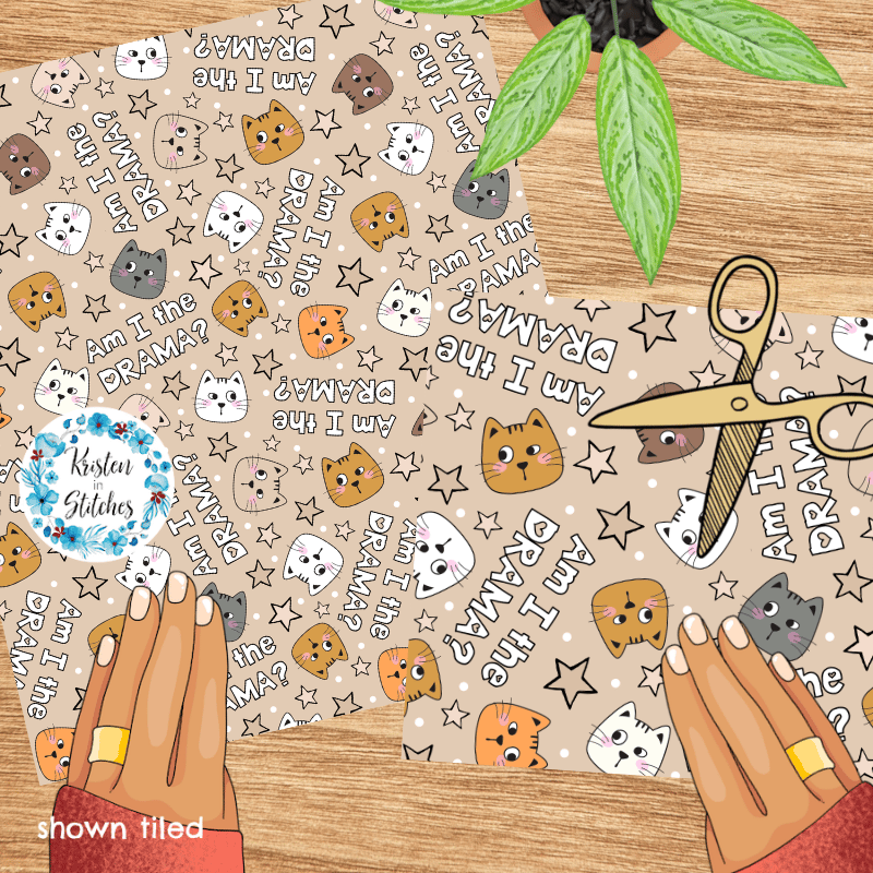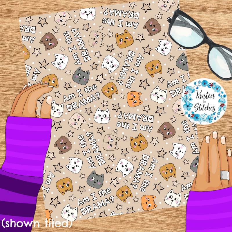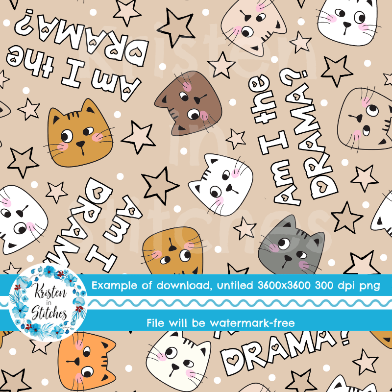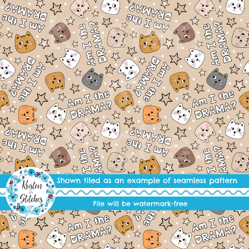 Am I The Drama? Sarcastic Cats Seamless Pattern, Tan