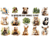 50 Woodland Baby Animals Watercolor Clipart PNG Bundle