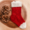 Adorned with a touch of nostalgia and designed for versatility, this stocking is an ideal ornament size, ready to grace your tree.