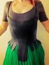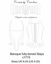 This is a 9-panelled (or 10 if splitting the front panel) demi-bust corset pattern (with shoulder straps) inspired by an original 1715 design (conical rib shaping). Sizes (UK) 8 -24 (US 4 - 20). It can be partially or fully-boned.