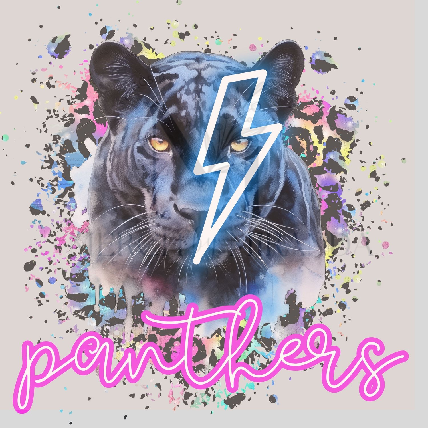 Panther Mascot - Panthers - Neon Lightning Bolt - School Spirit - Digital Download - Leopard Print