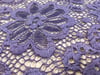 A lace with deep, rich indigo flowers that takes on a different blue hue according to how the light hits the fabric.