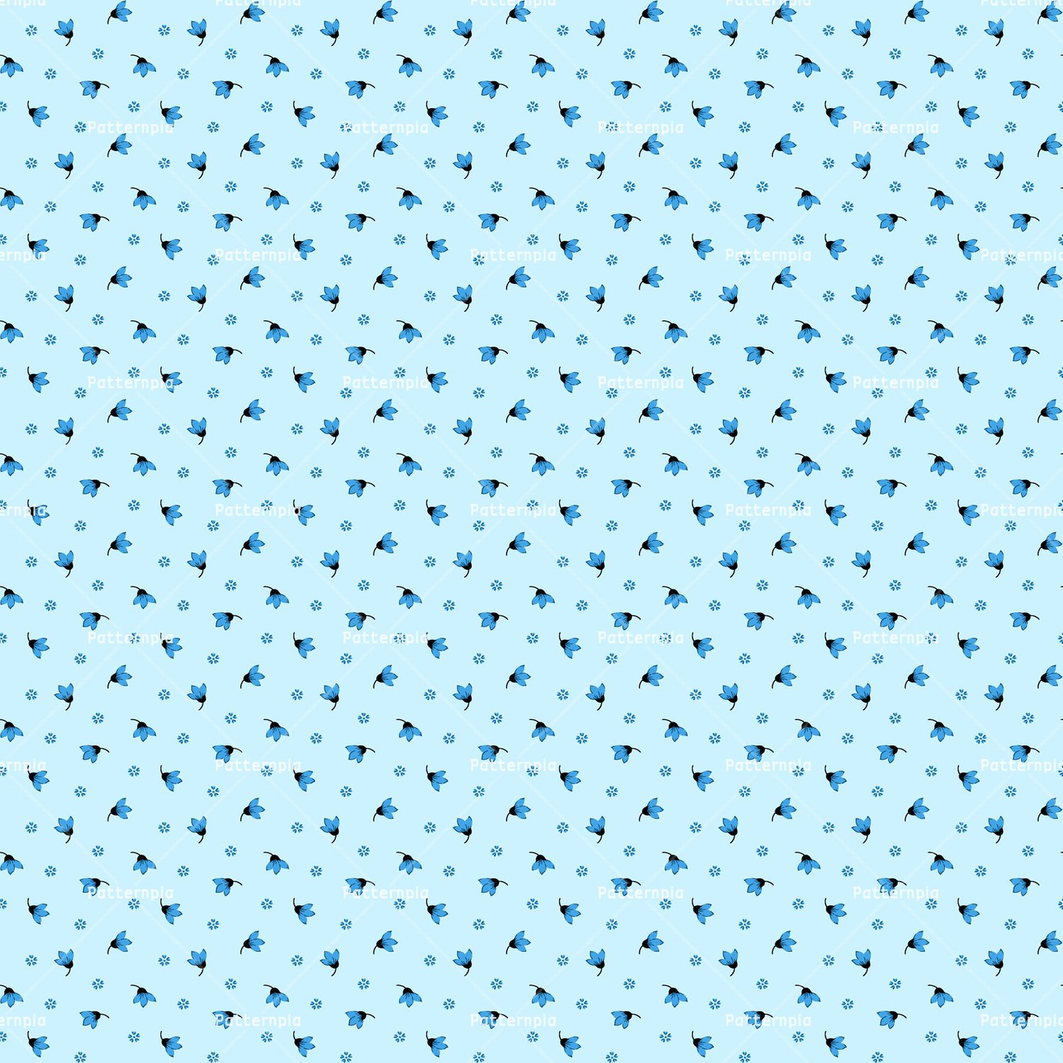 Tiny azure bluebell buds and white florets on a sky blue ground.