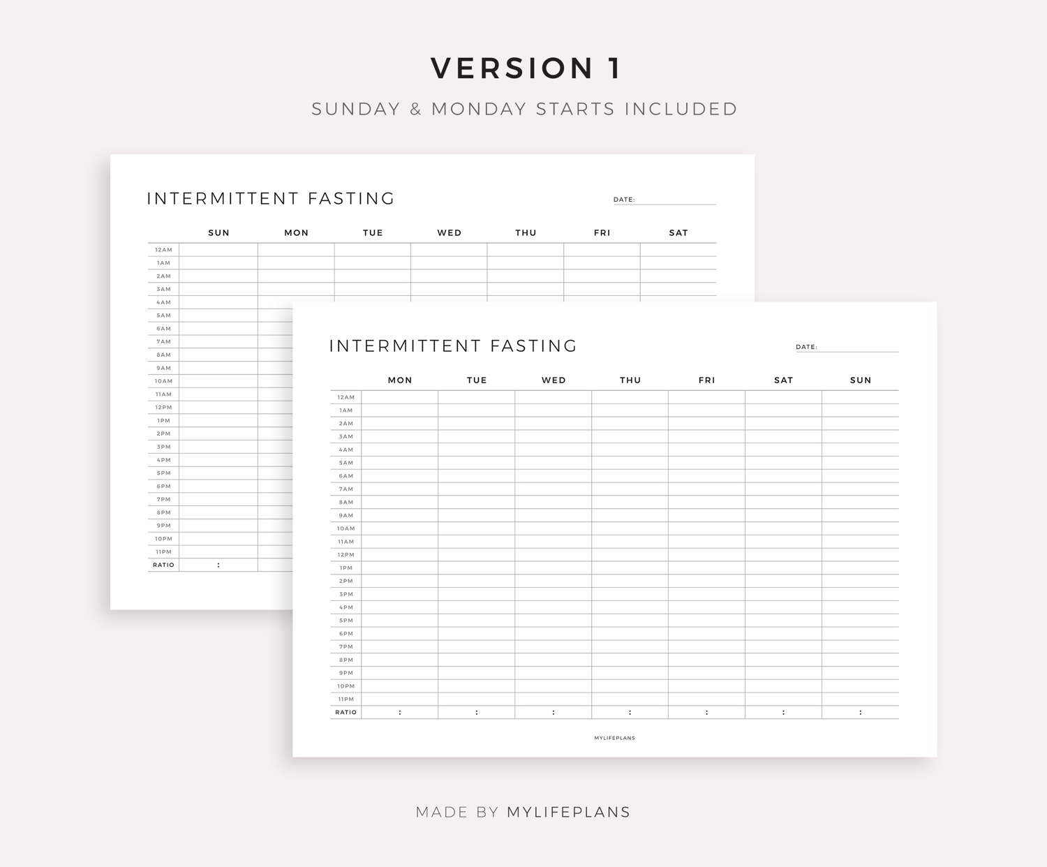 Weekly Intermittent Fasting Tracker, Landscape, Digital Template for Goodnotes, Notability, Ipad