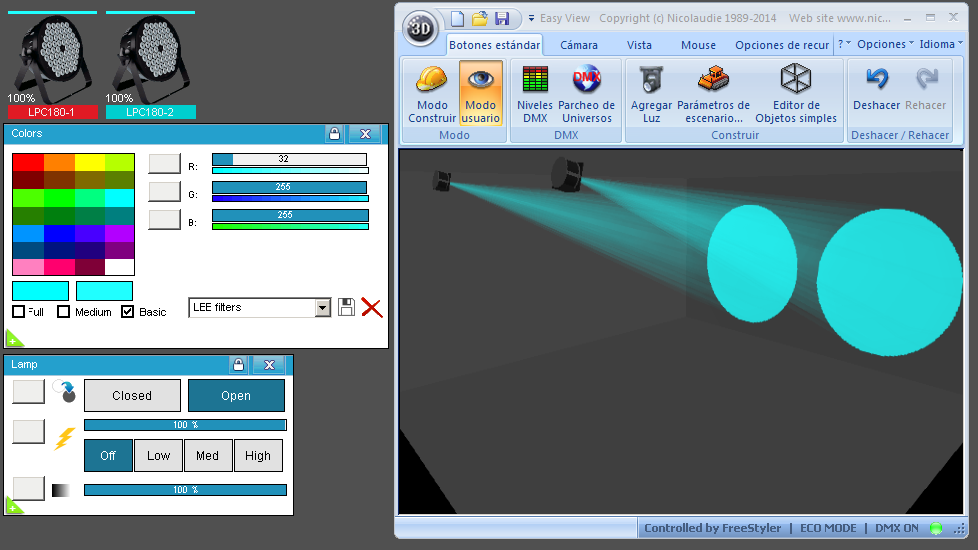 Esta Librería SSL2 está optimizada para trabajar con Magic 3d Easy View. Es decir para ver una representación 3D de las secuencias que estemos realizando con Freestyler, QLC+ o cualquier otro soft que se conecte con Magic 3d.