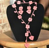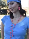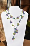This delicate necklace is worked in one piece, so you won’t have to join motifs. The earrings are made the same way. The necklace can be also used as a wrap bracelet.