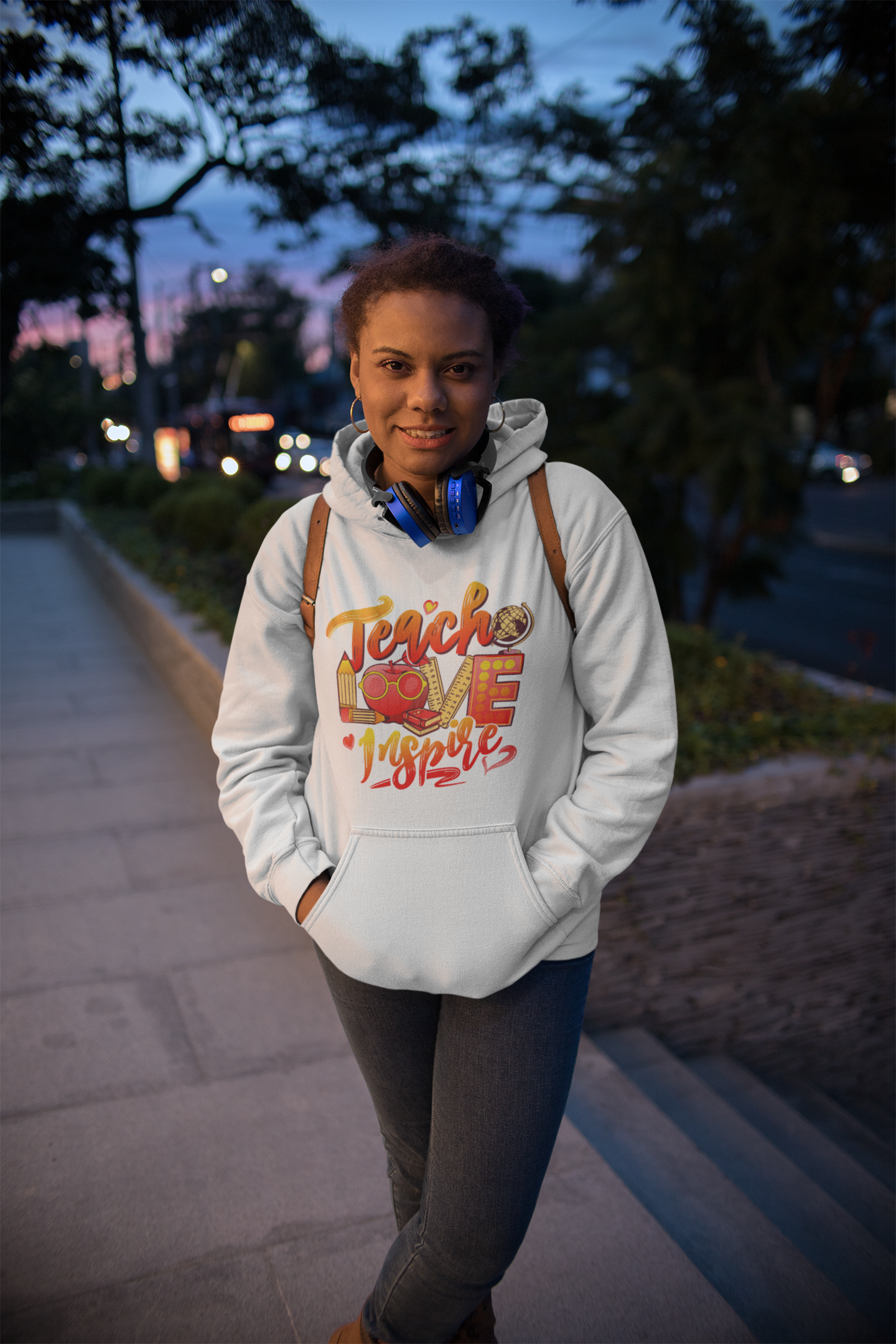 TEACH LOVE INSPIRE White w/Orange & Gold Lettering Hoodie