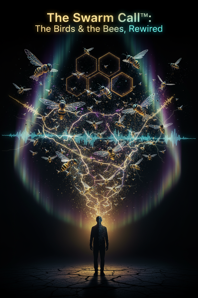 The Swarm Call™ is a gonzo, awe-tinged prestige sci-fi thriller where a viral sex-ed platform mutates into a planetary-scale intimacy signal and hive-mind. This synth-forward thriller weaponizes intimacy and desire, reimagining them as global infrastructure where individuality erodes. The visual grammar blends auroras, mascots, and glitching avatars, creating a collision of Arrival-scale wonder and Black Mirror unease. This high-concept, topical IP offers a clear path to premium streaming, ready to drive massive cultural discourse around cognitive and tech control.